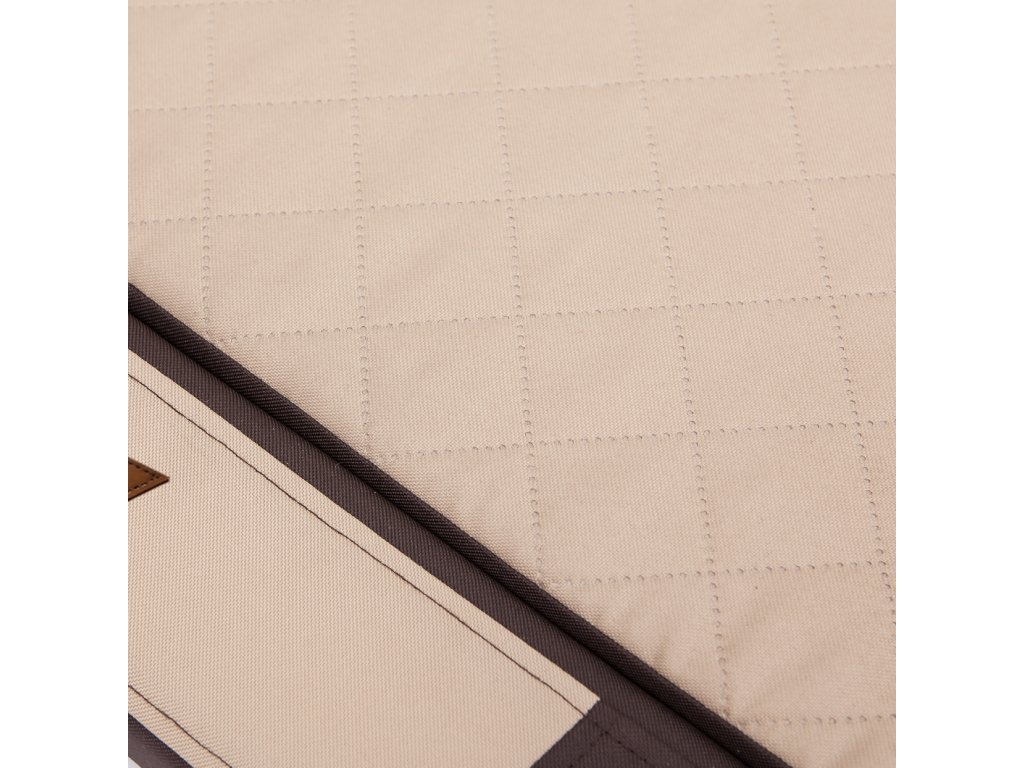 Pelíšek je vybaven snímatelným potahem se zipem, který lze snadno sundat a vyčistit. Použité technické tkaniny, zejména Oxford (Kodura), jsou pevné, odolné proti oděru a chrání pelíšek před vlhkostí. Díky tomu je vhodný nejen do interiéru, ale také na balkon či do venkovního kotce.