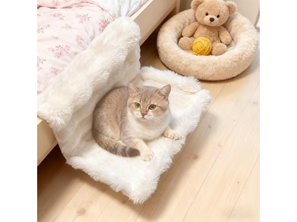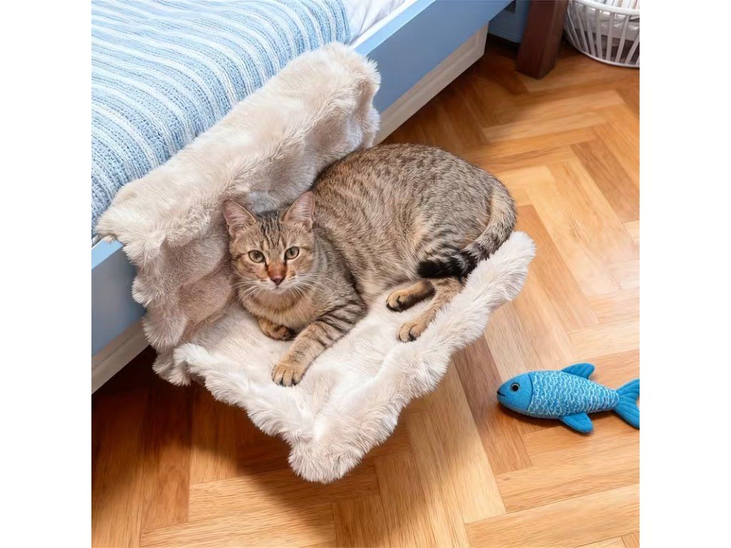 Díky měkkému plyšovému povrchu je pelíšek maximálně příjemný na dotek a poskytuje ideální místo pro spánek i relaxaci. Zavěšení na rám postele navíc šetří místo a vytváří pro kočku klidný kout jen pro ni.